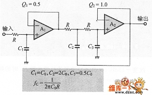 圖2由同一常數(shù)構(gòu)成的-18dB/oct的低通濾波器