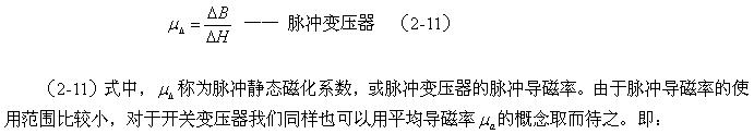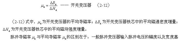 本上都是固定的,并且是單極性脈沖,其磁滯回線的面積相對(duì)來說很小,因此,鐵芯的脈沖導(dǎo)磁率幾乎可以看成是一個(gè)常數(shù);而開關(guān)變壓器輸入脈沖電壓的幅度以及寬度都不是固定的,其磁滯回線的面積相對(duì)來說變化比較大,鐵芯導(dǎo)磁率的變化范圍也很大,特別是雙激式開關(guān)變壓器,因此,只能用平均導(dǎo)磁率