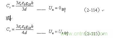對(duì)于圖2-43-b,可求得變壓器初級(jí)或次級(jí)兩層線圈之間的分布電容為: