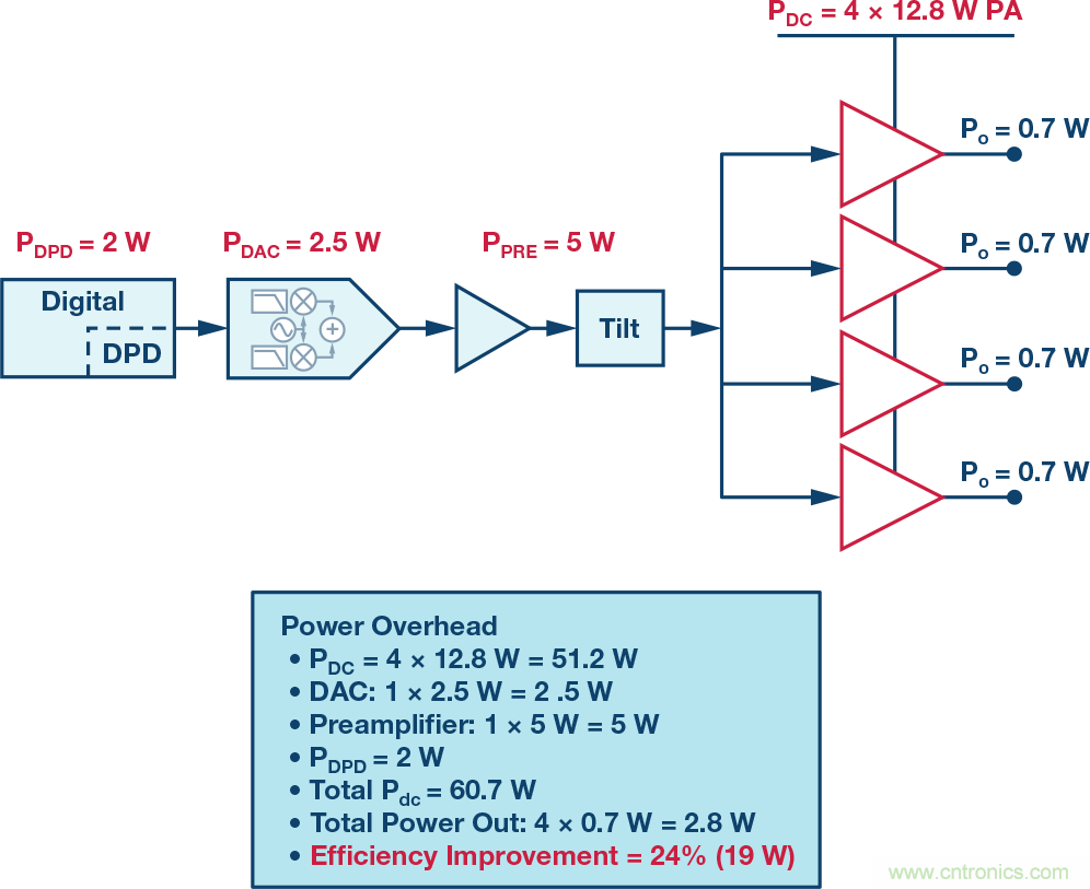 圖4. 通過數(shù)字預(yù)失真方案實(shí)現(xiàn)節(jié)能概述